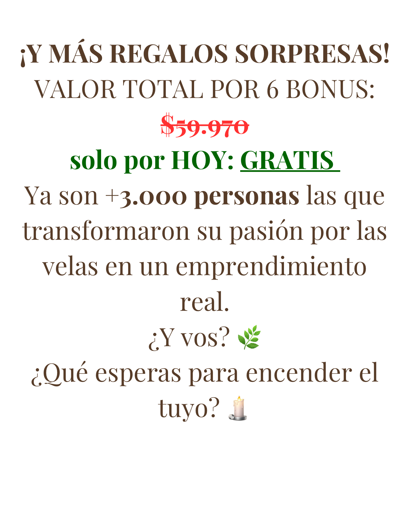 📘 Si dentro de los primeros 7 días sentís que el contenido no te ayuda a aprender a crear y vender tus velas naturales desde casa, simplemente escribinos y te devolvemos el 100% de tu dinero, sin preguntas ni complicaciones.